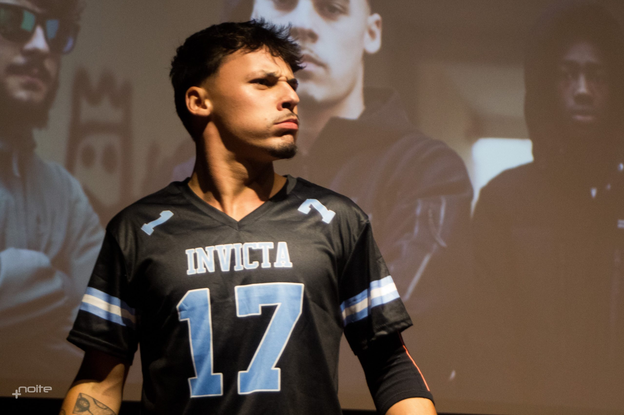 Subitamente, “Oro Sobre Azul” by: Genus 4585 ecoa na arena e o terceiro aluno da Invicta Wrestling revela-se: